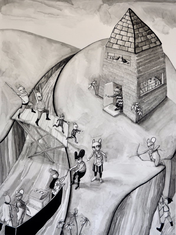 - weapons issue in a tower ink/watercolor on paper 6×9 inches