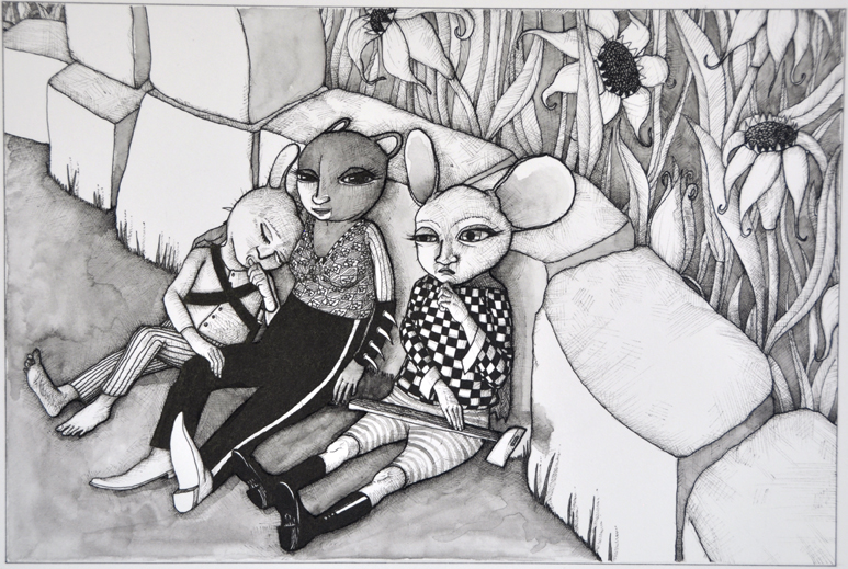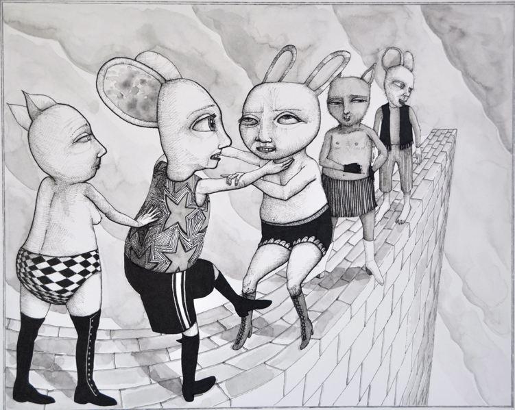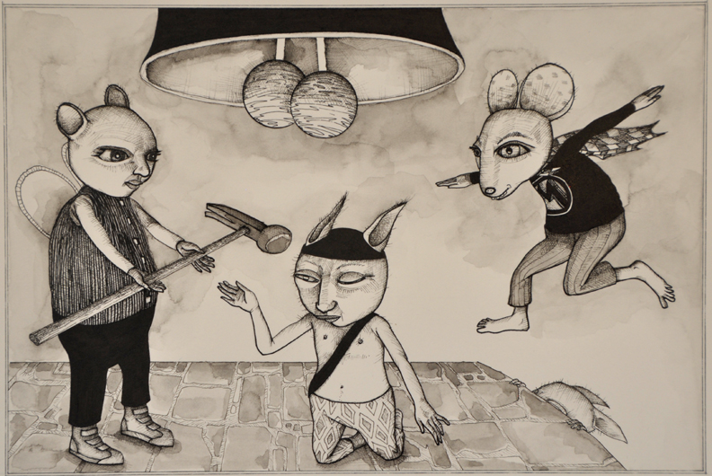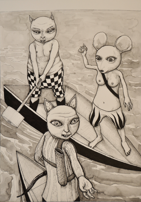 - mouse man on a plain pencil on paper 14 x 8 inches