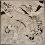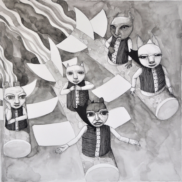 - figures in a formation ink, watercolor/paper 9×9 inches