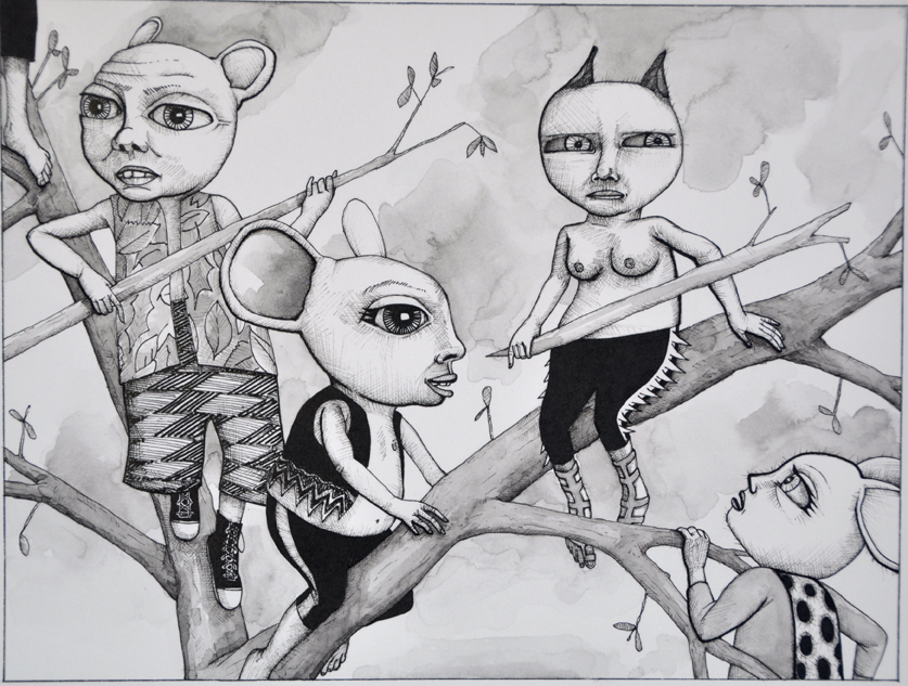 - soldiers waiting in a tree ink/watercolor on paper 6×8 inches